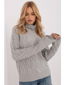 MladaModa Rolákový sveter s ažúrovým vzorom model 44500 šedý