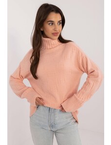 MladaModa Rolákový sveter so vzorom model 42135 broskyňový