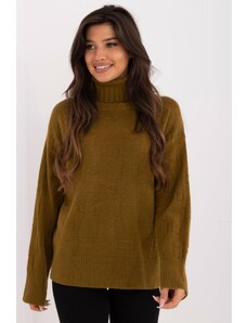 MladaModa Rolákový sveter so vzorom model 42135 farba khaki