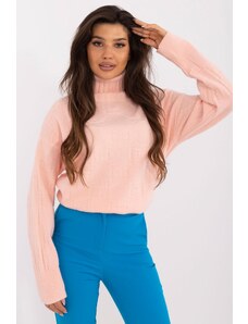 MladaModa Rolákový sveter s ažúrovým vzorom model 34261 broskyňový