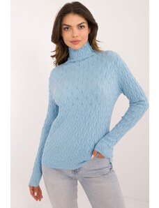 MladaModa Rolákový sveter s ažúrovým vzorom model 34261 svetlomodrý