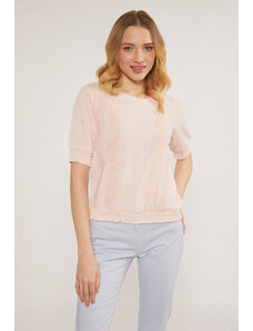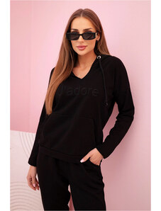 Popis: Dámska mikina s aplikáciou prúdového lietadla na kapucni. Mikina s dlhými rukávmi a výstrihom do V. Mikina má na bokoch vrecká. Tento model určite doplní každodenné jarné outfity. Modelka na obrázku má 177 cm a nosí veľkosť 36.