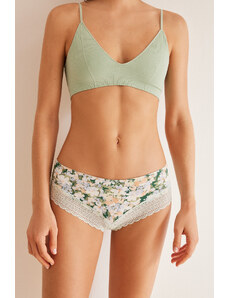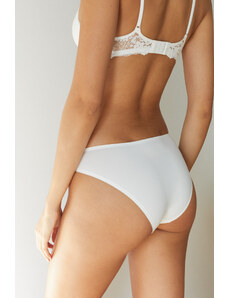 Women'secret Klasické biele nohavičky z mikrovlákna a čipky