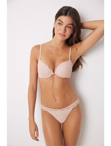 Women'secret GORGEOUS Ružová push-up podprsenka z mikrovlákna a čipky