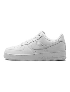 Nike Air Force 1 "FONTANKA" je teniska kultové siluety s bílým kožený svrškem, zdobeným elegantní texturou, doplněnou o žlutý detail na boční straně boty. Přestože není viditelná, tak v mezipodešvi se skrývá stejná vzduchová bublina jako známe například z modelu Air Max. Ta se stará o nadstandardní pohodlí. Model částečně vyrobený z recyklovatelných materiálů.