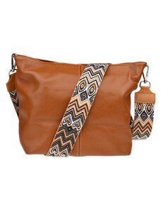 Camel kožená talianska crossbody kabelka Prisca Camel s prídavným pruhom VII NovaKabelka.sk