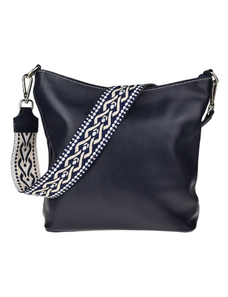 Modrá kožená talianska crossbody kabelka Reni Grande Blu s prídavným pruhom VII NovaKabelka.sk
