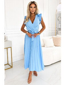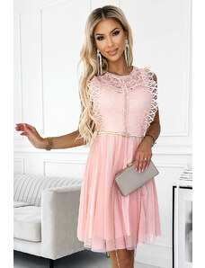 GRETA - šaty s čipkou, tylovou sukňou a zlatým opaskom. farba: modrá. značka numoco. európska výroba.Greta - šaty so zlatým opaskom - modréRozmery sú merané na plocho - pred a po natiahnutí látky (+/- 2 cm)Modelka na obrázku má výšku 165 cm a na sebe veľkosť UNI(S - L).Rozmery:UNIOd pása k pásu(A)41 - 46Pás(B)36 - 46Boky(C)40 - 59Dĺžka od podpazušia(D)70Dĺžka od ramena(E)9290% polyester, 5% elastan, 5% lurex