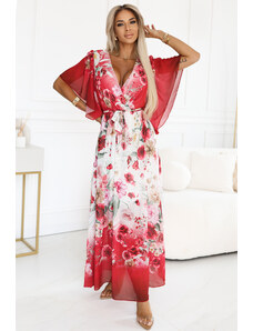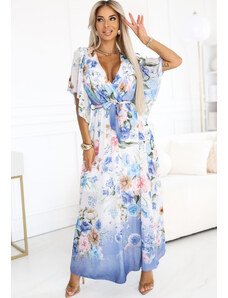 NUMOCO Biele maxi šaty s kvetinovým vzorom UMA 245-1