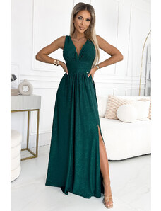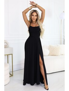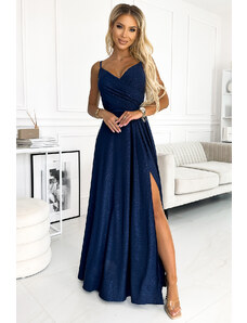 Chiara sú elegantné, dlhé maxi šaty na ramienka, vyrobené z lesklého, brokátového materiálu v klasickej čiernej farbe. Krásne tvarovaný výstrih zvýrazňuje hornú časť postavy a rázporok na sukni dodáva na zmyselnosti a vytvára mimoriadnu kompozíciu. Pružný materiál sa dokonale prispôsobí postave. Tieto jedinečné šaty sú perfektnou voľbou na Silvestra, ples, karneval, svadby a ďalšie dôležité príležitosti, ktoré vyžadujú maxi šaty. Vyrobené v Poľsku značkou Numoco. Chiara je kvintesencia triedy a šik. Dlhé šaty Chiara - čierne s trblietkami Rozmery sú merané na plocho - bez natiahnutia materiálu (+/- 2 cm)