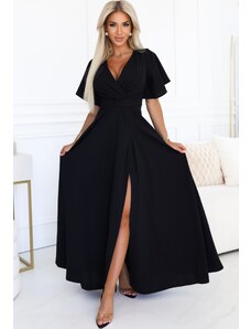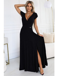 Dlhé exkluzívne šaty s výstrihom - čierne s trblietkami Rozmery sú merané na plocho - bez naťahovania materiálu (+/- 2cm)