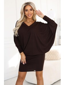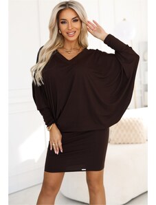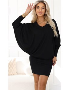 Netopierie šaty s výstrihom. Vyrobené z elastického materiálu s trblietkami. Tmavo modrá farba. Značka Numoco . Poľská výroba. Netopierie šaty - tmavo modré s trblietkami Rozmery sú merané na plocho - bez natiahnutia materiálu (+/- 2 cm)