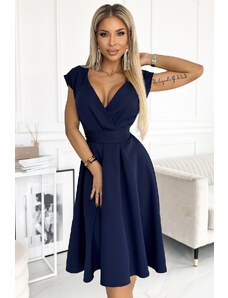 Objavte jedinečnú eleganciu v modrých midi šatách! ? Táto ženská a štýlová kreácia zaujme listovým výstrihom, ktorý decentne zdôrazňuje siluetu, a širokým opaskom zvýrazňujúcim pás. Vzdušné, rozšírené dno dodáva ľahkosť a dokonale splývajú pri pohybe. Ideálne na svadby, večierky a elegantné príležitosti. Cíťte sa krásne a sebavedomo v každej situácii!