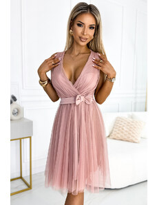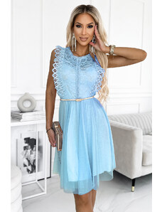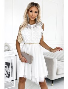 GRETA - šaty s čipkou, tylovou sukňou a zlatým opaskom.