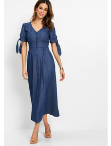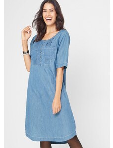 Bonprix Bavlnené džínsové šaty po kolená, 1/2 rukáv, farba modrá