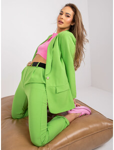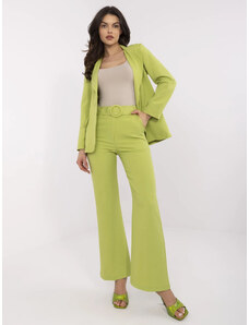 ITALY MODA Limetkové dámske spoločenské nohavice s vreckami a opaskom DHJ-SP-18737.08-lime green