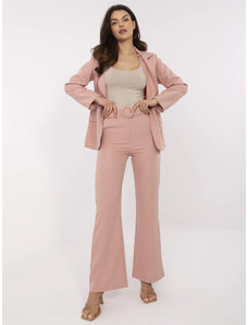 ITALY MODA Svetloružové dámske spoločenské nohavice s vreckami a opaskom DHJ-SP-18737.08-light pink