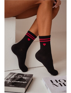 Kesi Čierne dámske bavlnené ponožky srdce a prúžky