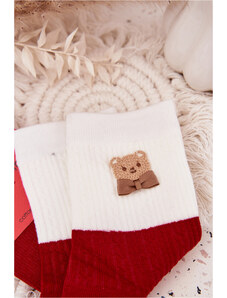 Kesi Červené dámske vianočné ponožky s medvedíkom a mašľou