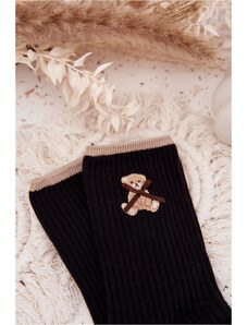 Kesi Čierne dámske bavlnené ponožky s malým medvedíkom