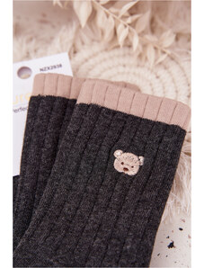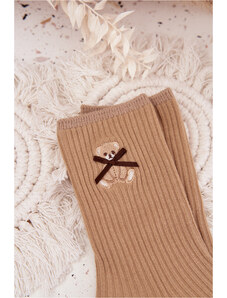 Kesi Svetlo hnedé dámske bavlnené rebrované ponožky s medvedíkom