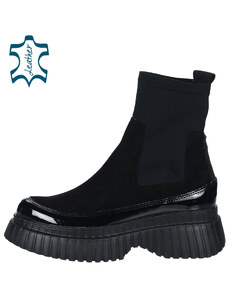 OLIVIA SHOES Čierne členkové čižmy z lakovanej a brúsenej kože na podošve VOYAGE DKO2276
