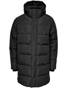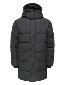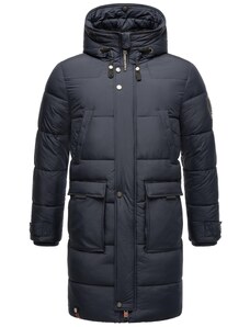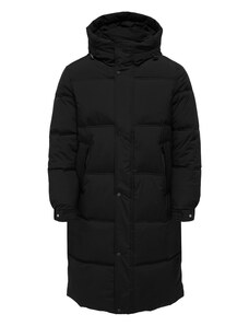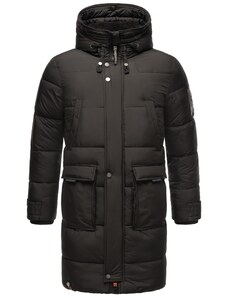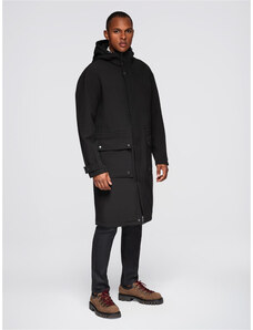 Ombre Men's parka coat with fleece lining and waist adjustment - black