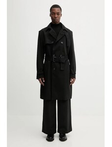 Ombre Elegant military double-breasted coat for men with wool - black