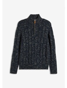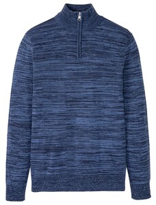 Bonprix Pulóver so zipsom, melírovaný, osmičkový vzor, farba modrá
