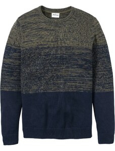 Bonprix Jemne pletený pulóver s bavlnou, Colourblocking, farba modrá