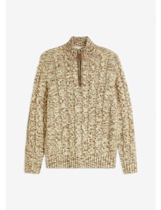Bonprix Pulóver so zipsom, melírovaný, osmičkový vzor, farba béžová