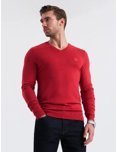 Ombre Clothing Klasický červený sveter s véčkovým výstrihom V20 SWBS-0107