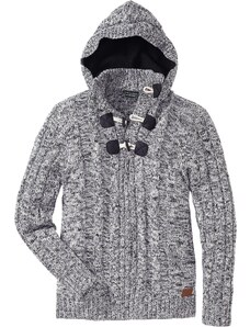 Bonprix Hrubo pletený pulóver s kapucňou a bavlnou, farba čierna