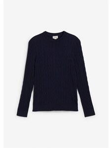 Bonprix Jemne pletený pulóver s osmičkovým vzorom, z mäkkého mixu bavlny, Slim Fit, farba modrá