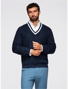 Ombre Clothing Klasický tmavo modrý sveter s véčkovým výstrihom V2 SWBS-0107