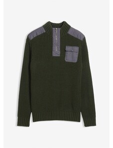 Bonprix Pulóver so stojačikom, hrubé pletenie, tkaná časť, farba zelená