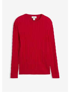 Bonprix Jemne pletený pulóver s osmičkovým vzorom, z mäkkého mixu bavlny, Slim Fit, farba červená