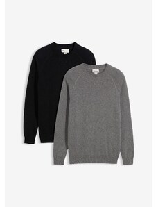 Bonprix Jemne pletený pulóver z bavlny, 2 ks, farba čierna