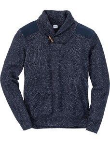 Bonprix Pulóver so šálovým golierom a kontrastnými detailmi, farba modrá