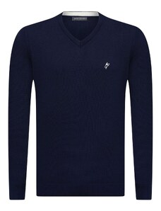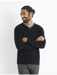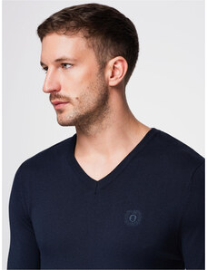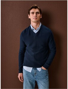 Sinsay - Bavlnený sveter s výstrihom do V - tmavomodrá