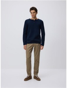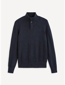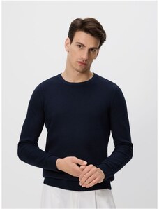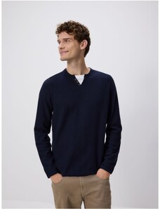 Reserved - Štruktúrovaný bavlnený sveter - tmavomodrá