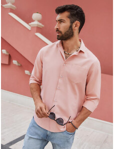 Ombre Clothing Trendy pánska broskyňová košeľa s dlhým rukávom V1 SHOS-0183