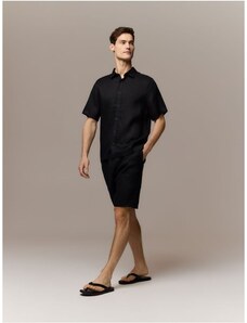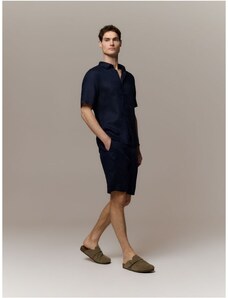Reserved - Šortky regular s prímesou ľanu - tmavomodrá
