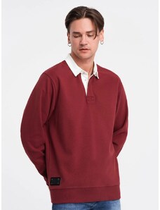 Ombre Clothing Elegantná bordová mikina s polo golierom V3 SSNZ-0132