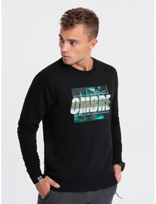 Ombre Clothing Pánska čierna mikina s výrazným nápisom V3 SSPS-0156