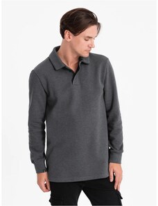 Ombre Clothing Zaujímavá pánska grafitová mikina s golierom V1 SSNZ-0149