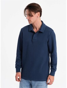 Ombre Clothing Zaujímavá pánska tmavomodrá mikina s golierom V5 SSNZ-0149