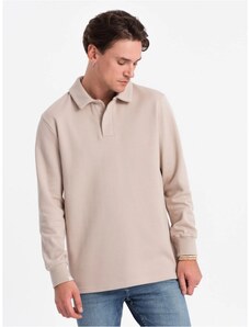 Ombre Clothing Zaujímavá pánska béžová mikina s golierom V2 SSNZ-0149
