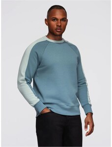 Ombre Clothing Trendy tyrkysovo-modrá mikina bez kapucne s ozdobným rukávom V4 OM-SSNZ-0200
