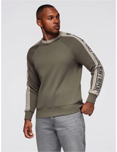 Ombre Clothing Trendy olivová mikina bez kapucne s ozdobným rukávom V1 OM-SSNZ-0200